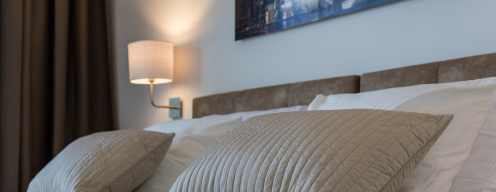 Sve naše spavaće sobe jednako su elegantne i atraktivne, svijetle, luksuzne, ugodne i prostrane, svaka ima najmanje 20 m2 i "black-out" zatamnjene zavjese za neometan san. Sve spavaće sobe pružaju dovoljno prostora za namještaj koji svakodnevno koristite i dovoljno prostora za slobodno kretanje. Svakoj sobi pridružena je i vlastita prostrana kupaonica sa dva umivaonika i masažnim tuševima.